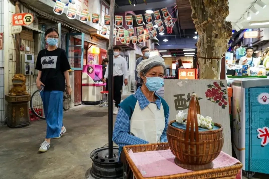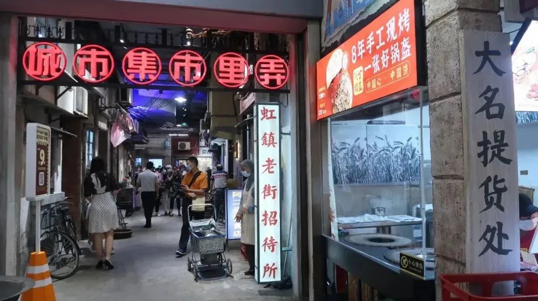 集市按照老上海弄堂場(chǎng)景,別出心裁地打造了90年代上海主題街區(qū)。