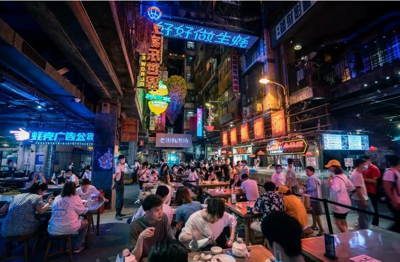 憑借巴渝傳統(tǒng)特色建筑的吊腳樓,光怪陸離的夜景,以及媲美《千與千尋》的二次元的視覺(jué)呈現(xiàn),在開(kāi)街10年后進(jìn)入“黃金時(shí)代”,借助新媒體和IP話題發(fā)酵不斷攀升,發(fā)展成為如今的頂流的IP網(wǎng)紅地標(biāo)。