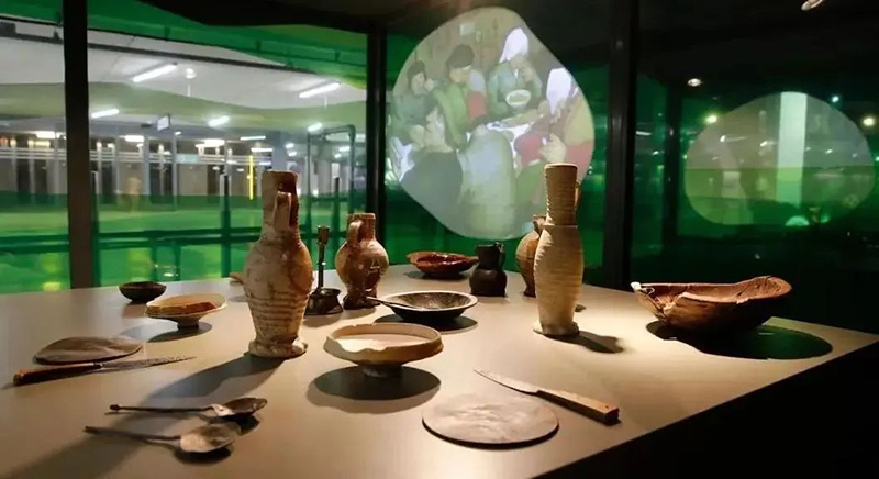 項(xiàng)目舊址在1940年的一次戰(zhàn)爭中歷史建筑都被摧毀,Markthal市場再建設(shè)時,地下考古團(tuán)隊發(fā)現(xiàn)了各種各樣的中世紀(jì)物品。為予以紀(jì)念,便以垂直展覽的形式在市場內(nèi)的自動扶梯上展示。