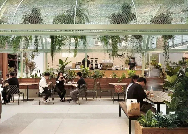 項(xiàng)目通過將調(diào)性契合的小眾品牌聚集,避免商業(yè)項(xiàng)目被一個個孤立且陌生的品牌瓜分,形成一個完整且相互聯(lián)動的品牌集合,打造新型社交場景下的美食市集空間。MEET&EAT猶如一個專注于餐飲內(nèi)容的買手店,充分利用小眾優(yōu)質(zhì)品牌的同時,有目的地孵化出所需的餐飲內(nèi)容,除了可以體驗(yàn)“早C晚A”外,還能讓川味小吃店與面館做鄰居,攜手推出套餐。