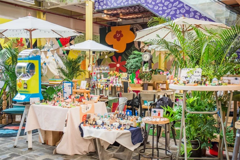 烏瑪市集的商鋪沒有千篇一律,也不需要整齊劃一,但每個小店都發(fā)揮其個性給消費(fèi)者帶來別樣驚喜。「美食小吃風(fēng)情街」的商鋪有的是夏日清新風(fēng),有的則是硬朗工業(yè)風(fēng),還有的是傳統(tǒng)中式風(fēng)等,利用多樣多端的風(fēng)格打造空間上“一步一打卡”的特色,增添游購樂趣。