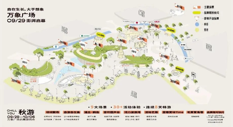 在萬象廣場亮相之際,成都萬象城打造了「秋游 CHILL YOU」廣場游園會,帶來9大場景、20+好物展位、30+活動體驗、連續(xù)8天的夢幻暢游,每個空間承載不同內(nèi)容,啟幕首日吸引客流超19萬人次。