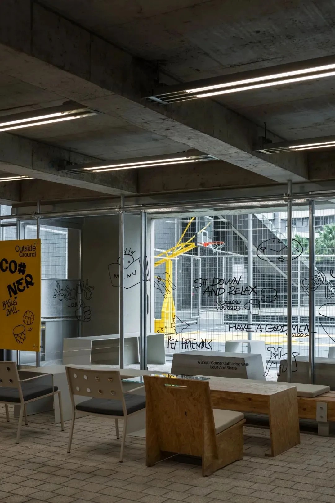 CO#NER食堂,以禁欲系冷淡風(fēng)為主旋律,設(shè)計上承襲了極致輕工業(yè)的時尚美學(xué),細(xì)膩而不失格調(diào)。其獨(dú)特的售賣模式圍繞模塊化“檔口”展開,融合POP UP快閃店概念,營造出既持續(xù)又多變的用餐氛圍,旨在為顧客解鎖無限可能的美食探索之旅。空間內(nèi),水泥原色與暖木色家具巧妙碰撞,輔以生動活潑的簡筆插畫,色彩斑斕間傳遞出溫馨舒適的放松信號,讓人在享受美食的同時,也能感受到心靈的慰藉。