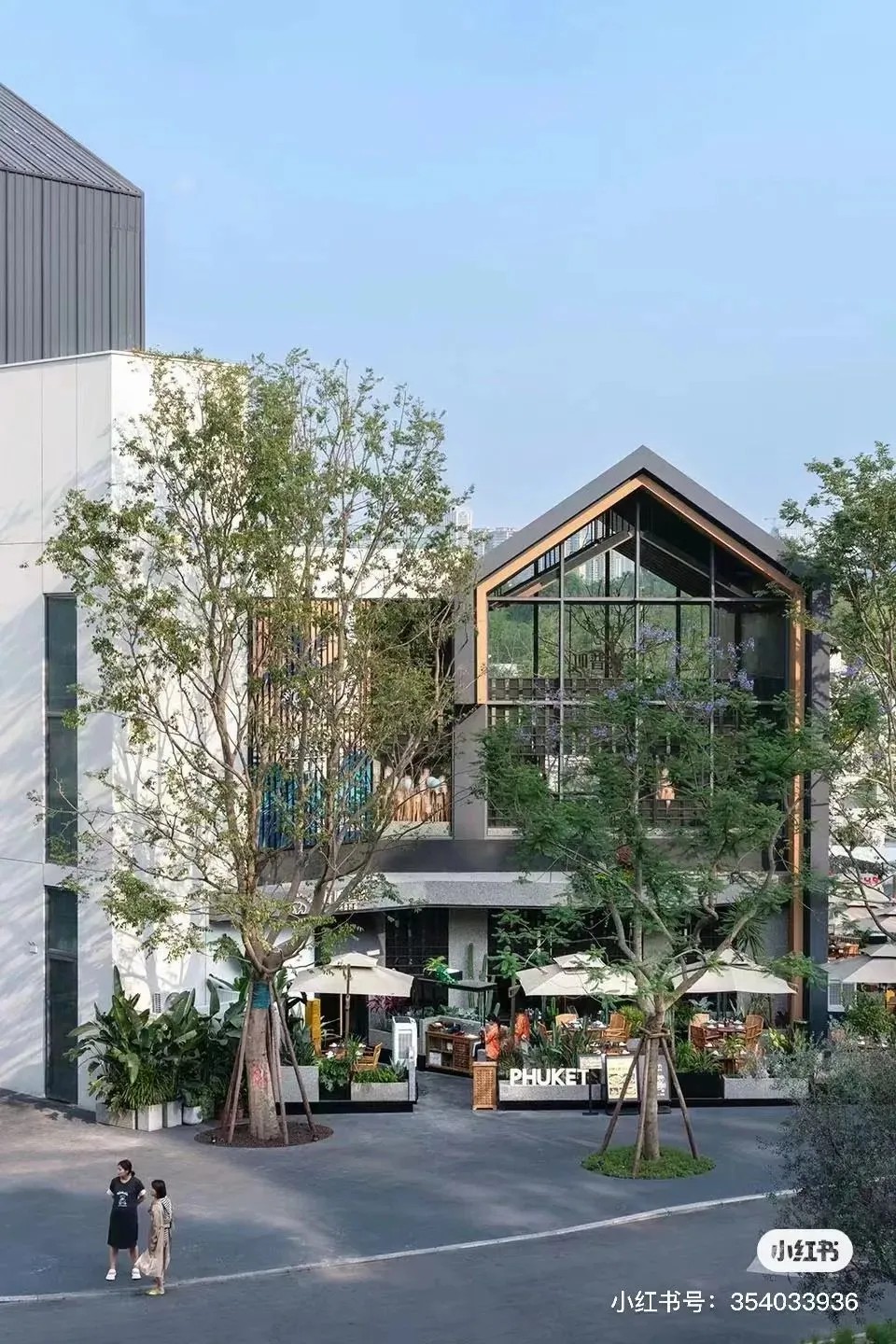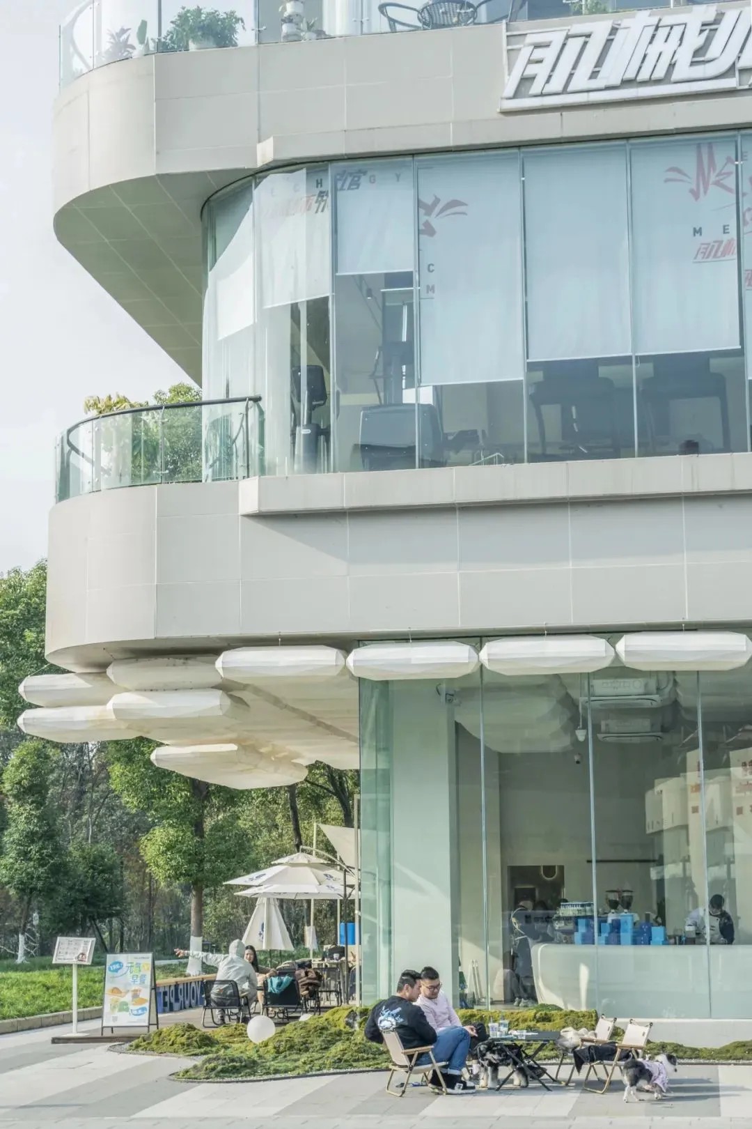 街道旁的建筑采用了大面積落地窗設(shè)計,讓室外的綠意與光線無縫融入室內(nèi)空間,營造出一種開闊而明亮的氛圍,使人心曠神怡,毫無拘束之感。