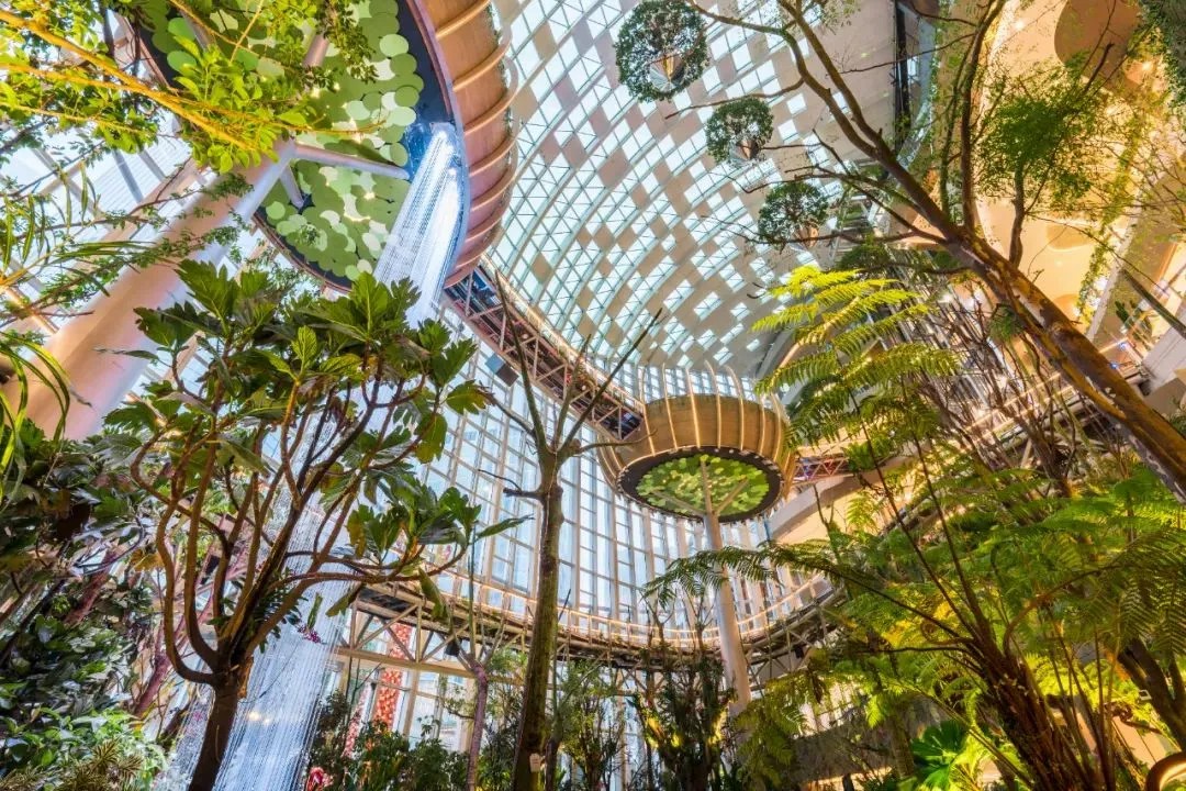 其中,「沐光森林」作為光環(huán)的標(biāo)志性景觀,以其縱跨6層、高達(dá)42米的室內(nèi)立體垂直植物園之姿,成為了眾人矚目的焦點(diǎn)。懸空其間的步行棧道,如同穿梭于綠色世界的秘徑,讓顧客在享受購物樂趣的同時(shí),也能感受到大自然的呼吸。這條懸空跨層步道,不僅巧妙地連接了商業(yè)區(qū)域與森林景觀,更讓每一次購物之旅都充滿了探索自然與發(fā)現(xiàn)驚喜的奇妙體驗(yàn)。