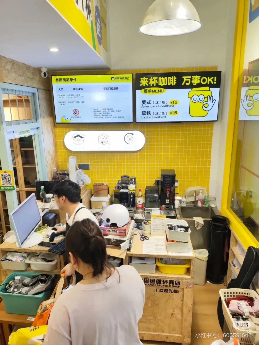 香港慢生活環(huán)保店Slowood,在保證質(zhì)量的前提下,店內(nèi)的所有商品去除一切包裝,或部分產(chǎn)品只采用環(huán)保的可降解材料,沒有任何塑料和紙張的浪費(fèi);位于杭州絲聯(lián)166文創(chuàng)園的閑魚循環(huán)商店,門店以閑魚APP標(biāo)志性的黃色為主色調(diào),門頭上標(biāo)注了“寄賣/二手/咖啡”字樣,門店屬性十分突出,門口還擺放了露營椅供顧客休息。