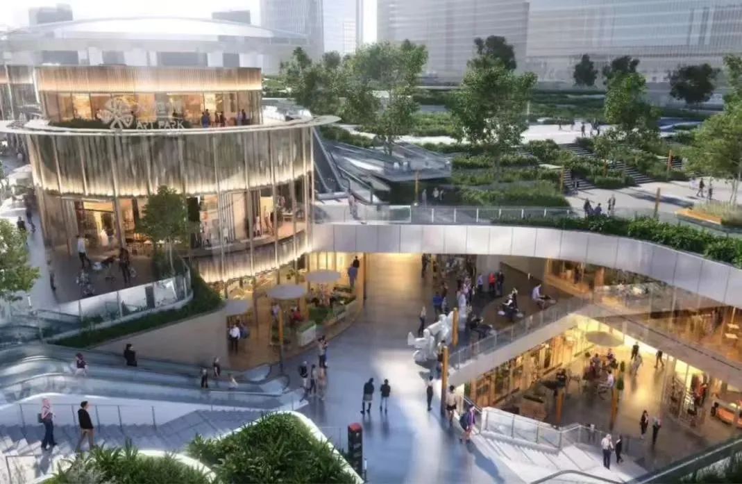 其次,打造公園+商業(yè)的模式,將休閑游憩功能與購(gòu)物娛樂(lè)功能相結(jié)合,滿足消費(fèi)者更多情緒共鳴的需求,如中關(guān)村ART PARK設(shè)計(jì)了若干下沉廣場(chǎng),將地下空間向城市和公園界面開(kāi)放,打造具有生態(tài)層次感三首層空間規(guī)劃;