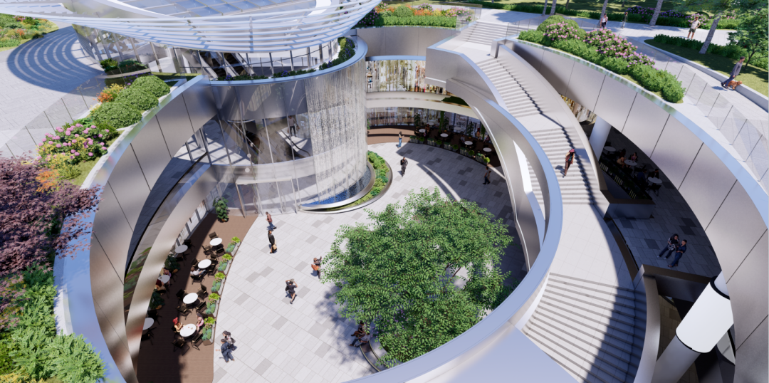 項(xiàng)目設(shè)計(jì)了若干下沉廣場(chǎng),將地下空間向城市和公園界面開(kāi)放,打造具有生態(tài)層次感的庭院-花園-公園,從而實(shí)現(xiàn)地下-地面-屋頂?shù)娜讓涌臻g規(guī)劃。不僅給到了項(xiàng)目和品牌乃至這個(gè)城市更多的場(chǎng)景敘事和想象空間,同時(shí)也給消費(fèi)者帶來(lái)了更多更豐富的社交空間、沉浸體驗(yàn)空間,最終打造了一個(gè)完美的生態(tài)場(chǎng)域。