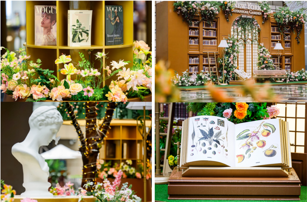 此次在深圳萬象城設立亞洲首展,掀起了一場城市綠野仙蹤式的浪漫仙境。如位于商場二期廣場的“漫櫻花殿”,標志性的穹頂溫室外山櫻綻放,綠植花藝結合拱坡設計,讓人置身漫天花海。此外,在靈感一隅、仙夢迷徑、古希臘芙羅拉許愿池、花海大道、綠野書閣、悠澗瀾影、萬卉長廊等打卡點位,得以享受夢幻般的神奇體驗。