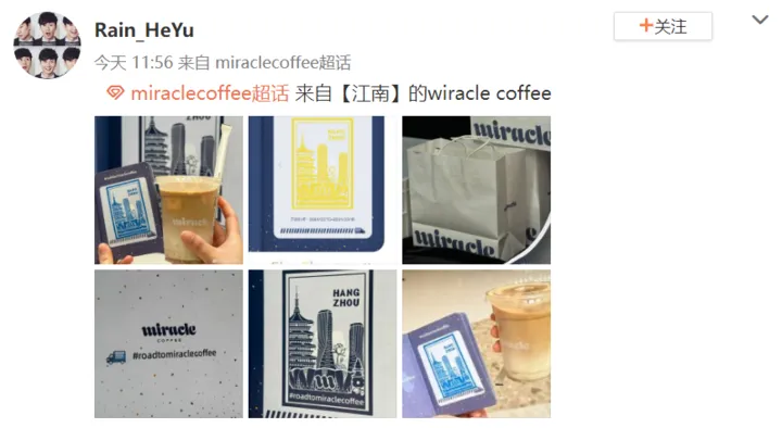 現場更有戴著墨鏡、鴨舌帽,身穿彩色拼接衛(wèi)衣的林俊杰亮相,為自己的咖啡品牌小奇跡(miracle)站臺,并在街區(qū)的小奇跡咖啡車上拍攝宣傳照。線上打造互聯網18g沖浪選手和城市福利情報官人設,玩透圈層影響,粉絲經濟如何做到叫好又叫,沉浸式陪伴追星以誠之名,實現一場雙向奔赴,深化年度定位江南流量時尚地標。