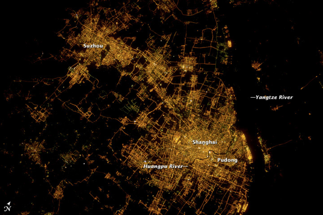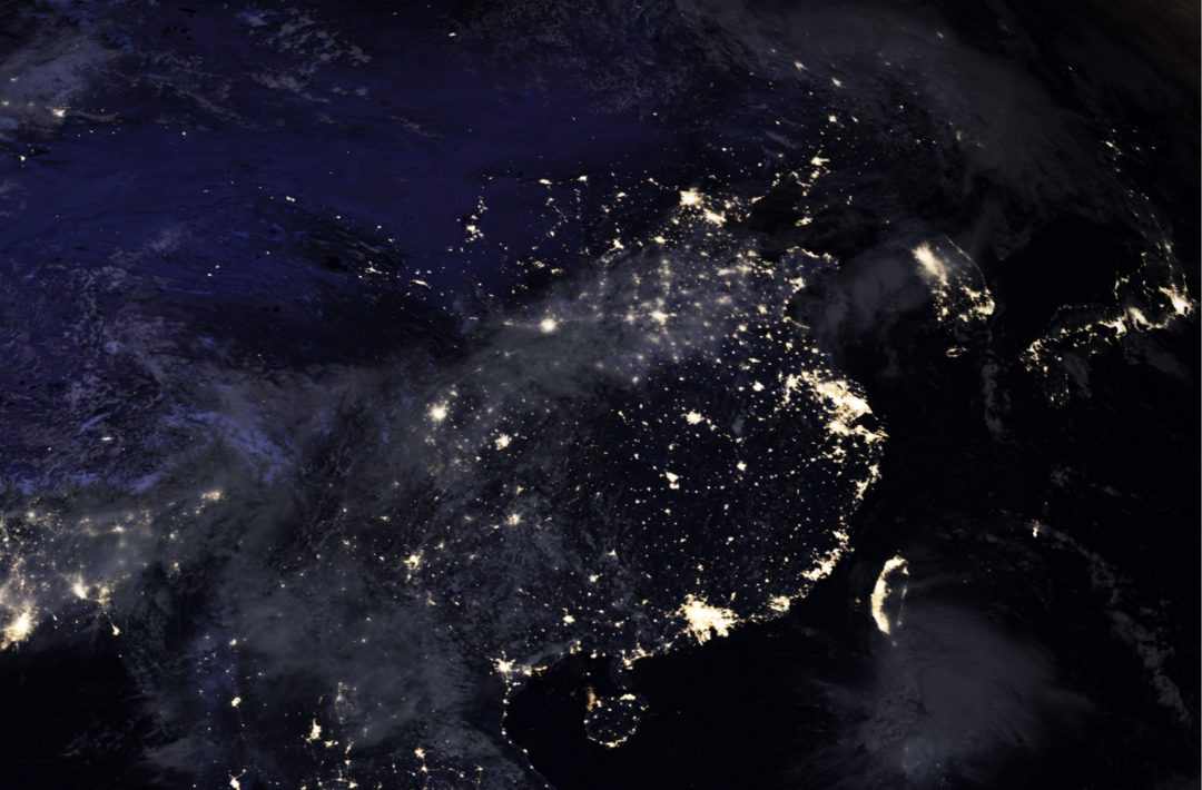 nasa公布的中國夜間燈光地圖顯示,2016年