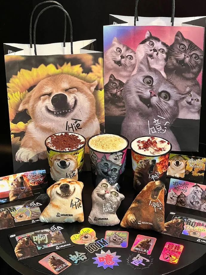 在2024年7月,樂(lè)樂(lè)茶再次推出三款新品,并以土撥鼠、柴犬、貓貓組成表情包大軍,替打工人喊出不開(kāi)心。